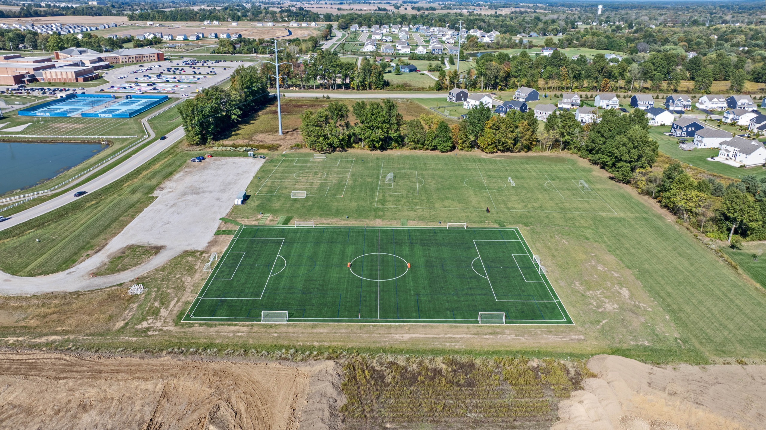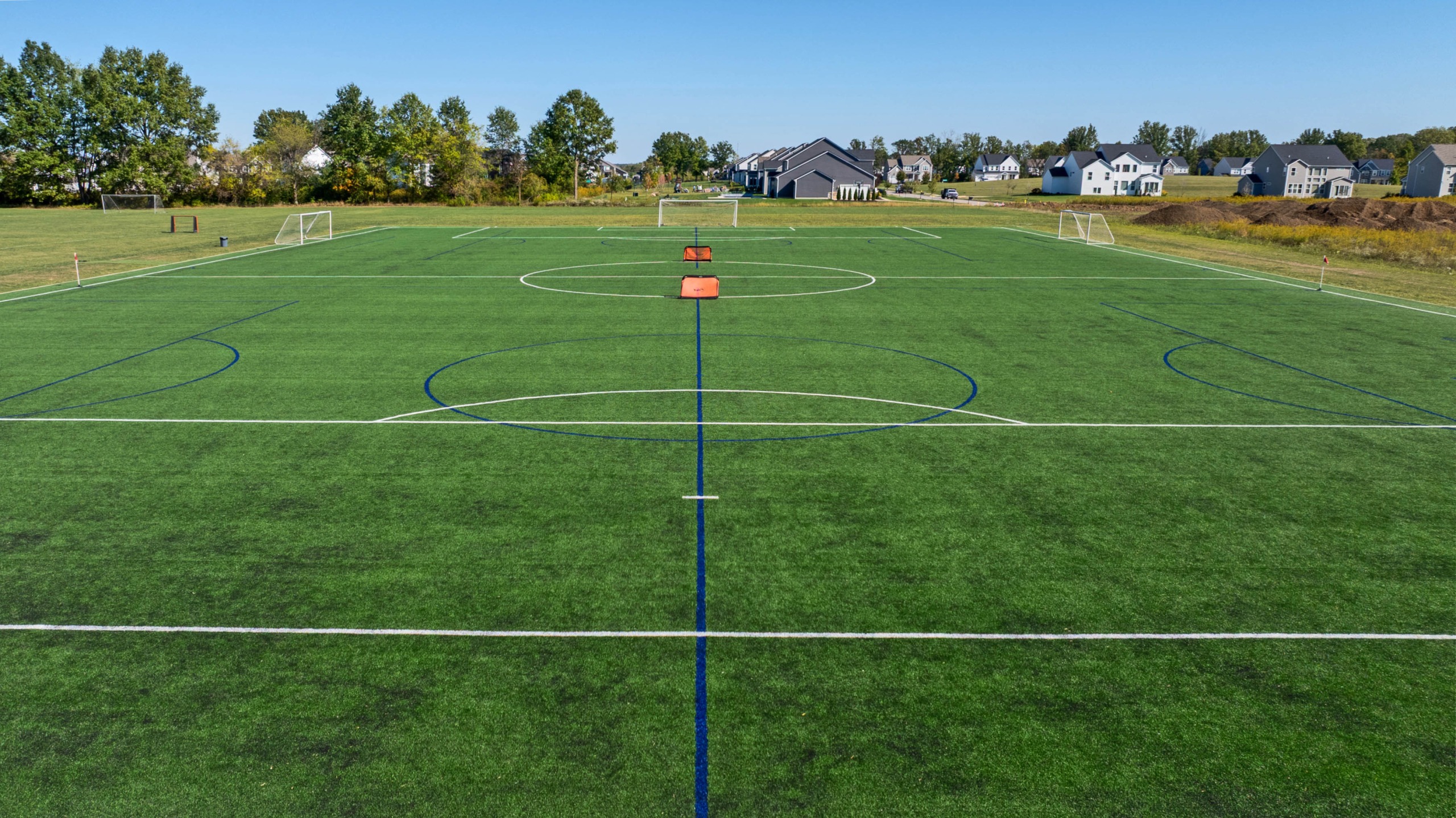 The Blast FC Soccer Complex is a premier training and competition facility featuring a versatile combination of turf and grass surfaces. We offer one full-sized, 11v11 turf field that can be split into two 9v9 fields. Additionally, the complex includes three dedicated grass fields: one full 11v11 grass field, a dedicated 9v9 grass field, and a 7v7 grass field, ensuring we have the appropriate space for every age group and competitive level.